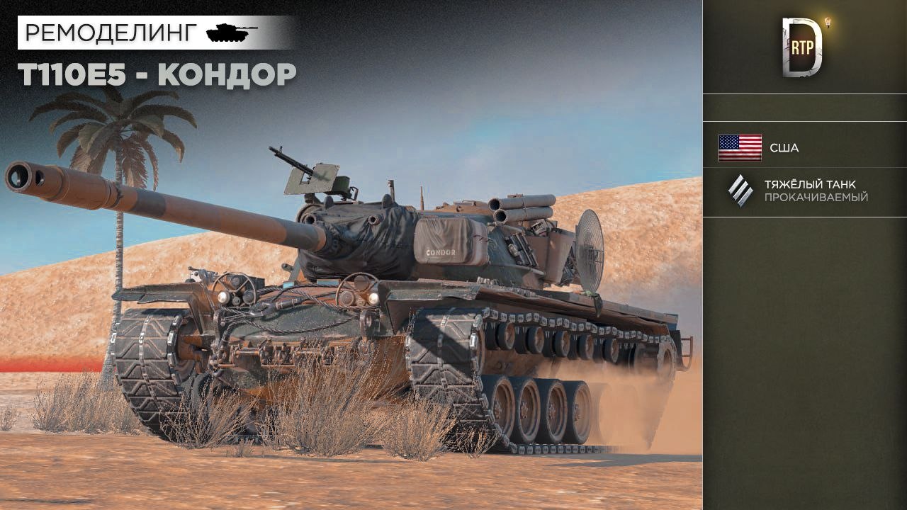 The mod replaces the standard T110E5 tank with a T110E5 in the 3D “Condor” style from WoT.