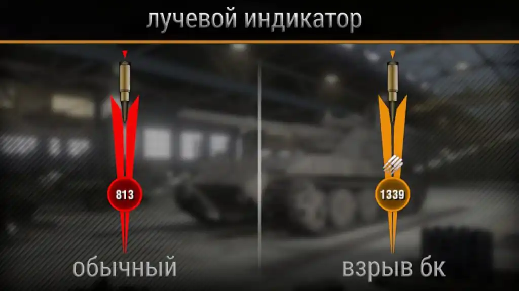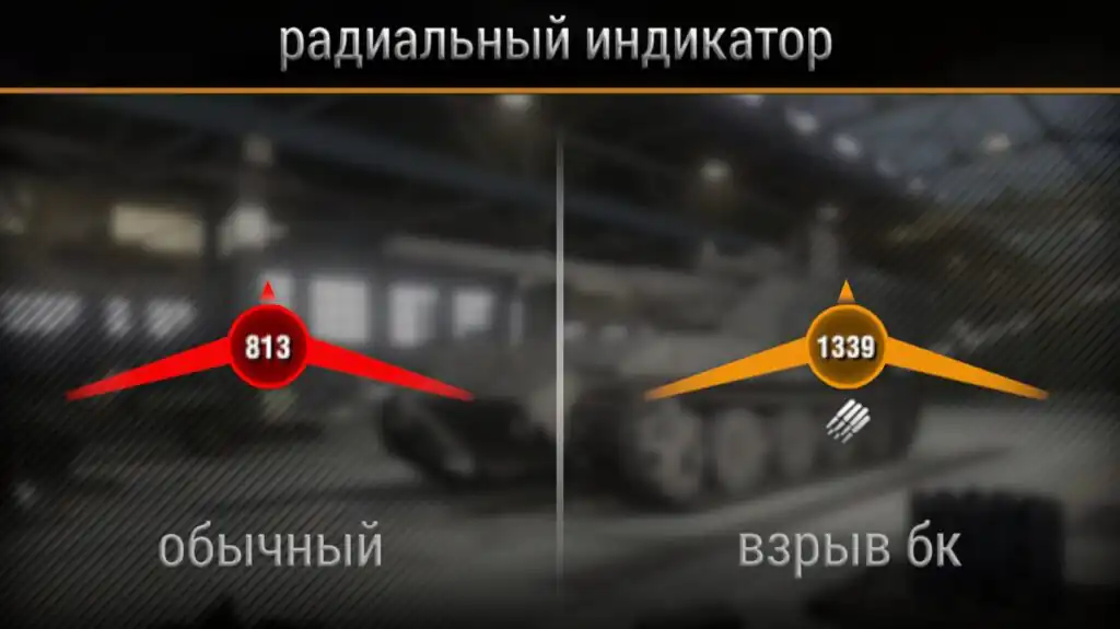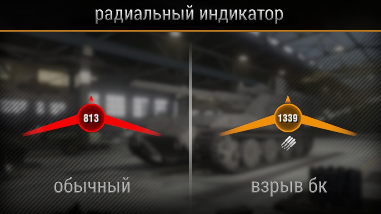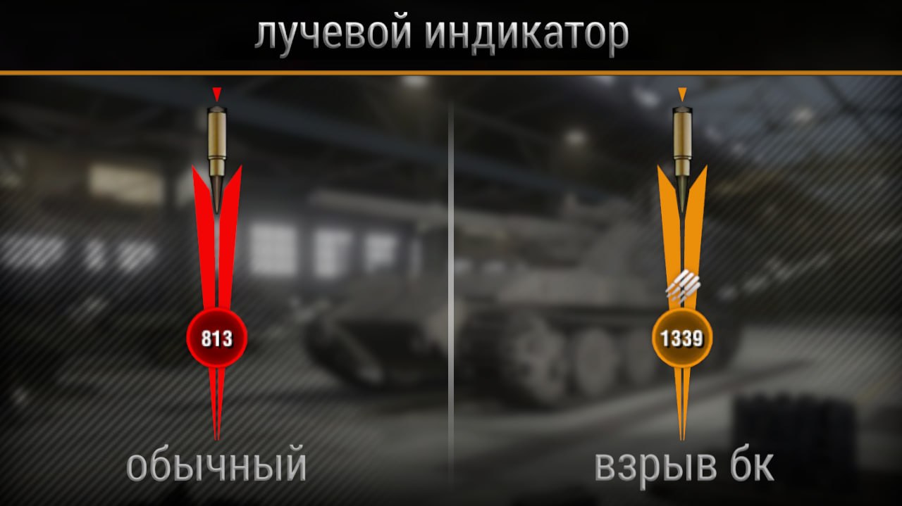 ・ разные цвета индикатора для обычного получения урона и взрыва бк