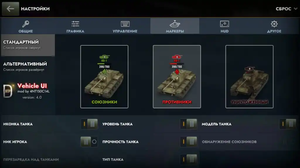 [Только Lesta] Маркеры интерфейса танка «Vehicle UI»