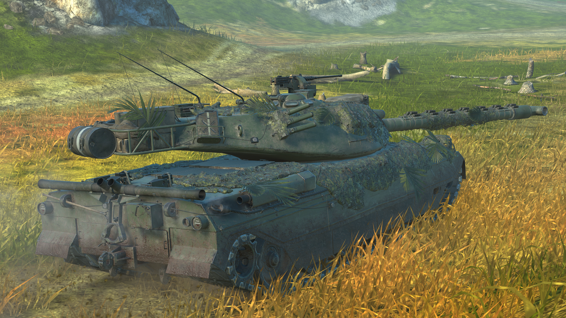 Дополнительно: маскировочная сетка у танка имеет анимацию колыхания, будто от ветра